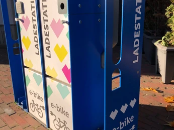 This charging station offers a safe way to charge your bike battery while you are out and about. The bike can also be connected there.